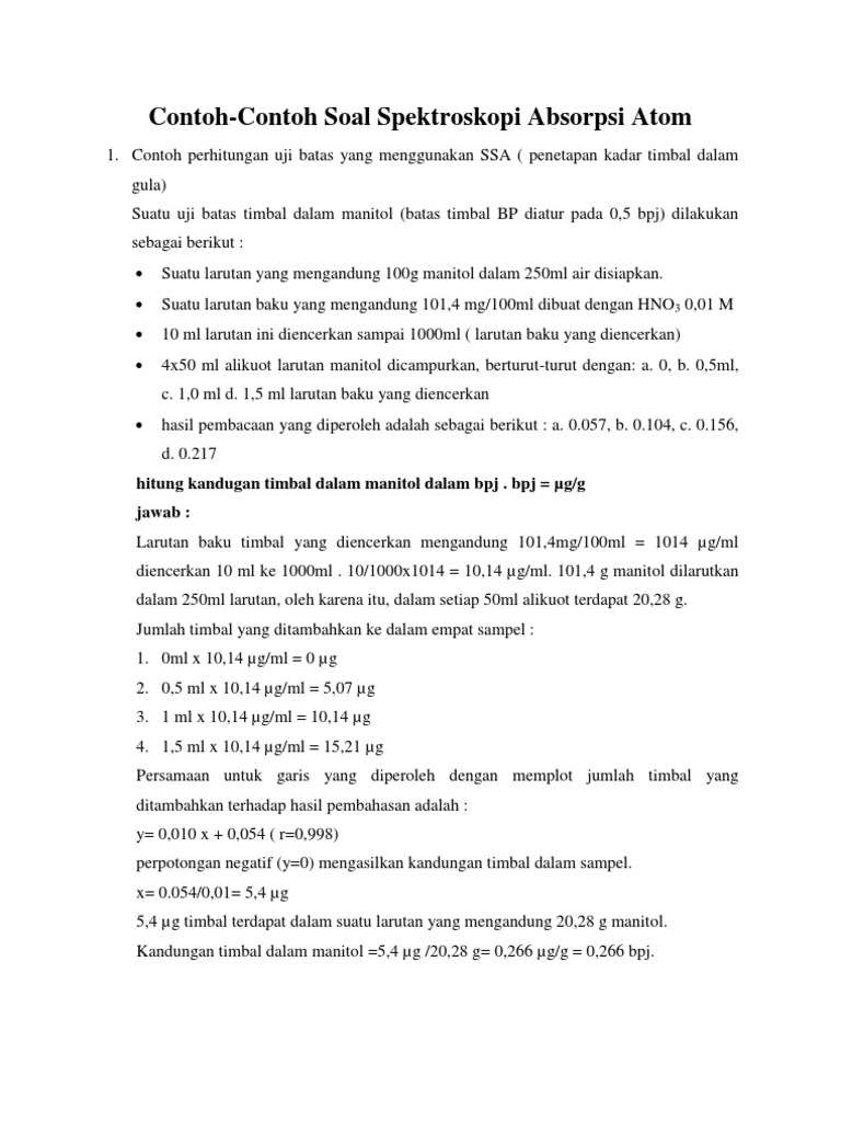 Latihan soal aas latihan soal flame emisi latihan soal uv spektrometri latihan soal spektrofotometri fluorecense latihan soal infra red spektrometri aas. Sampel yang telah mejadi abu kemudian ditambahkan HCl 10 M sebanyak 2 mL. Contoh Soal PEMM - Pengantar Ekonomi Makro.