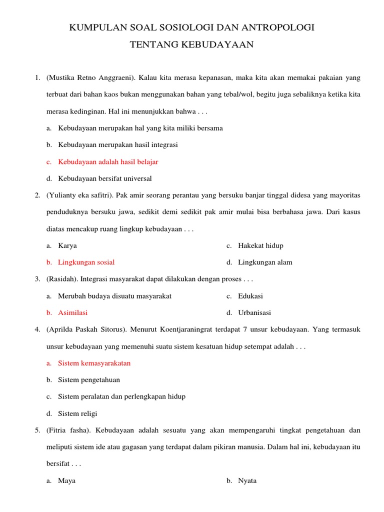 Soal Antropologi Kesehatan Dan Kunci Jawaban Mathlaul Khairiyah