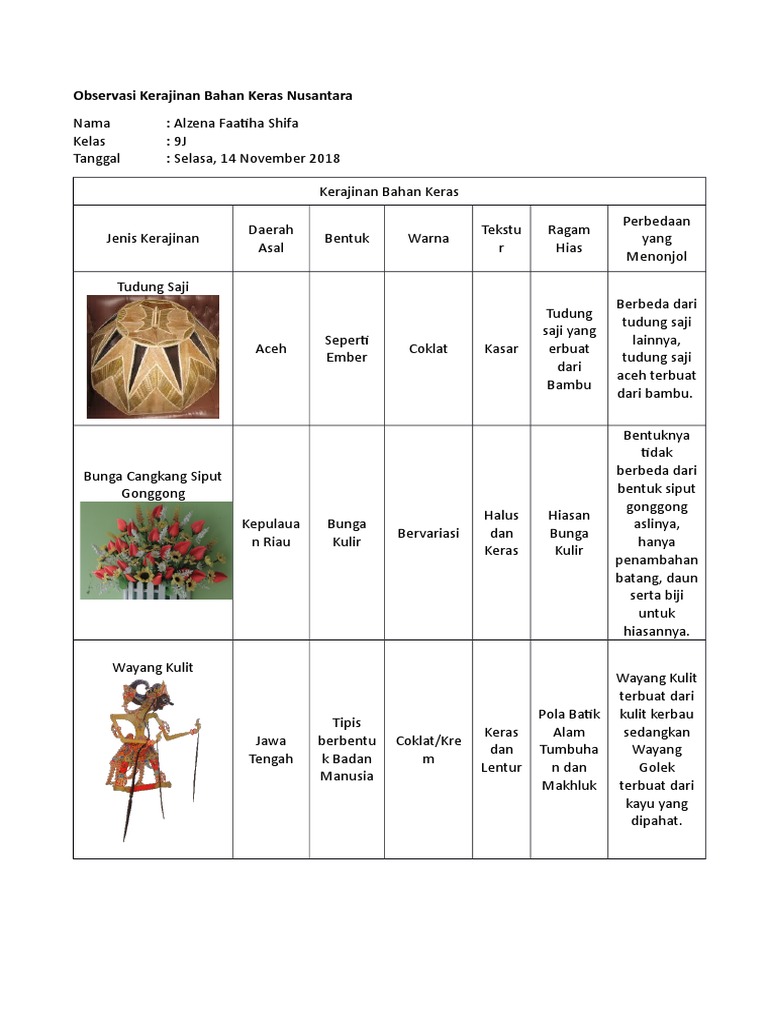 Prakarya Observasi Kerajinan Bahan Keras Nusantara